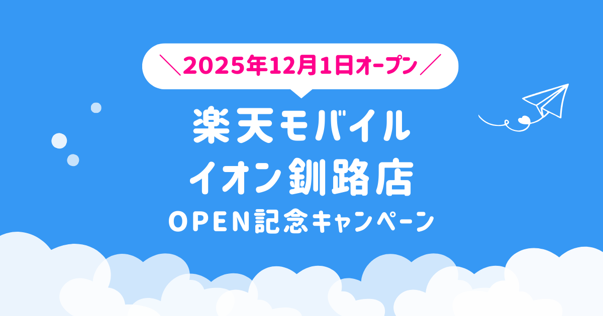 2025年12月1日(月)、北海道釧路郡に新たに「楽天モバイル イオン釧路店」がオープン。楽天モバイルの新規店舗では開店から60日間限定のOPEN記念キャンペーンを実施しています。