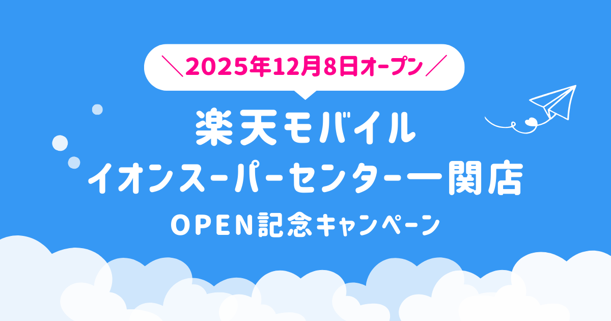 2025年12月8日(月)、岩手県一関市に新たに「楽天モバイル イオンスーパーセンター一関店」がオープン。楽天モバイルの新規店舗では開店から60日間限定のOPEN記念キャンペーンを実施しています。