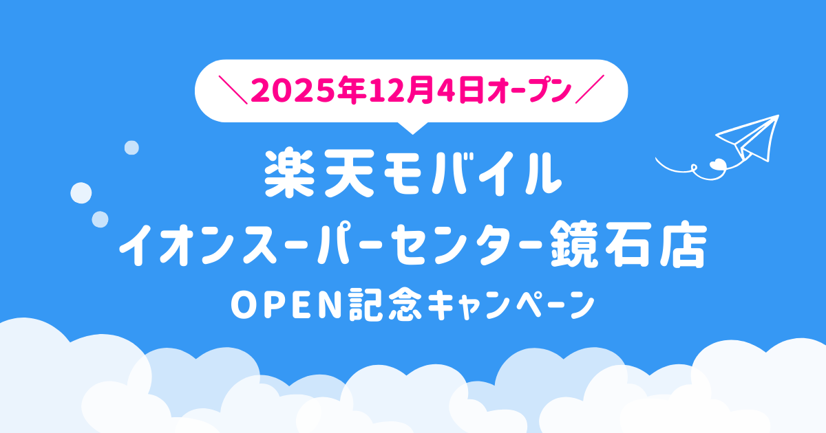楽天モバイル イオンスーパーセンター鏡石店OPEN記念。最大27,000円相当ゲットのチャンス!<12月4日(木)オープン>