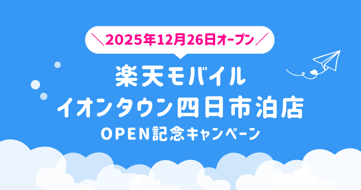 2025年12月26日(金)、三重県四日市市泊に新たに「楽天モバイル イオンタウン四日市泊店」がオープン。楽天モバイルの新規店舗では、開店から60日間限定のOPEN記念キャンペーンを実施しています。