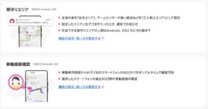 「見守りエリア」を設定することにより、そのエリアをお子さまが出入りしたときに通知でお知らせします。また、保護者用画面からお子さまのスマートフォンの居場所をリアルタイムで確認可能です。