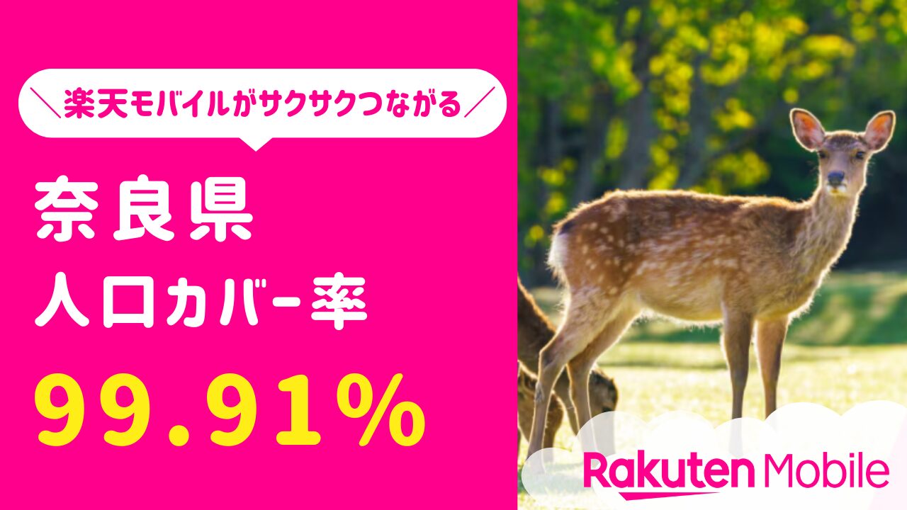 楽天モバイルの奈良県(生駒市含む)における人口カバー率は99.91%