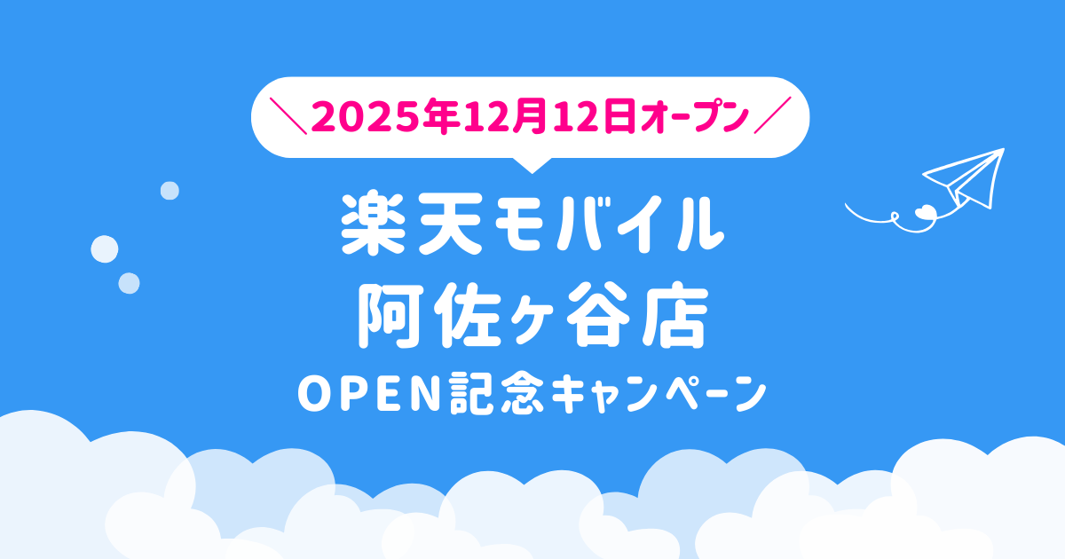 2025年12月12日(金)、東京都杉並区阿佐谷南に新たに「楽天モバイル 阿佐ヶ谷店」がオープン。楽天モバイルの新規店舗では、開店から60日間限定のOPEN記念キャンペーンを実施しています。