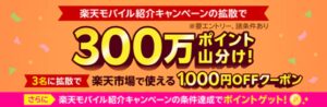 🎁 楽天モバイル紹介キャンペーンの拡散で300万ポイント山分け!