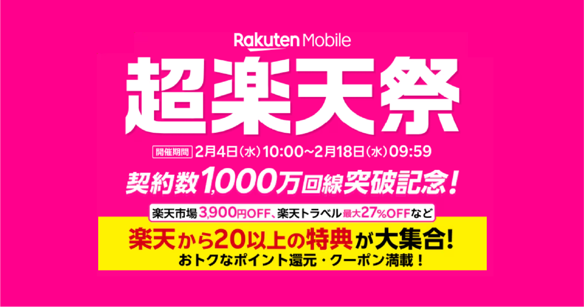 楽天モバイル契約者向けの期間限定キャンペーン超楽天祭が2026年2月4日(水)から2月18日(水)まで開催されます。本記事では、イベントの概要や特典、お得な活用方法をわかりやすく解説します。