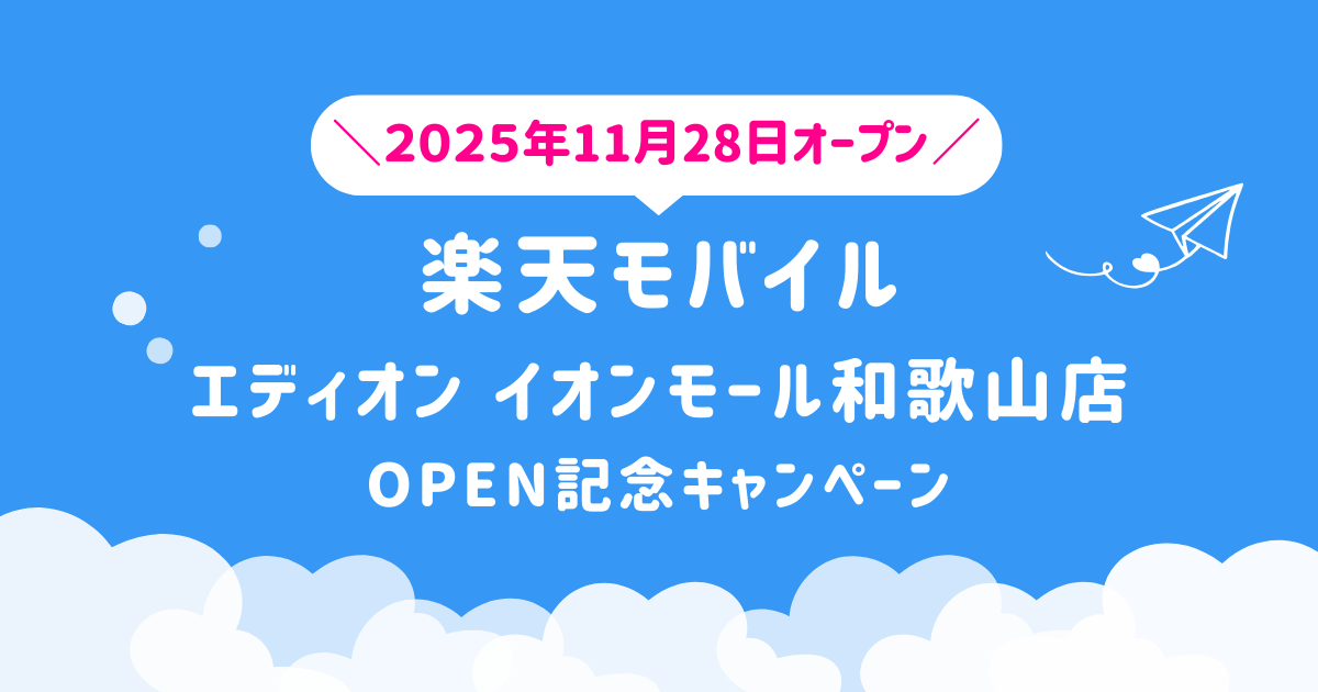2025年11月28日(金)、和歌山県和歌山市に新たに「楽天モバイル エディオン イオンモール和歌山店」がオープン。楽天モバイルの新規店舗では開店から60日間限定のOPEN記念キャンペーンを実施しています。