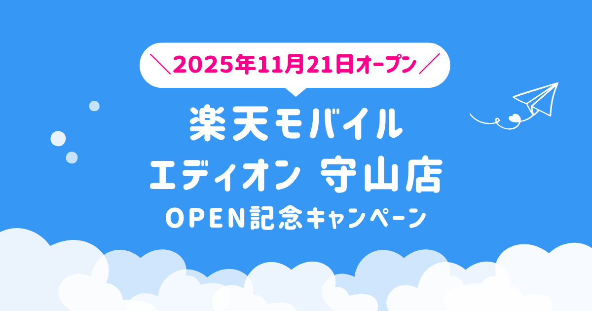 2025年11月21日(金)、滋賀県守山市に新たに「楽天モバイル エディオン 守山店」がオープン。楽天モバイルの新規店舗では、開店から60日間限定のOPEN記念キャンペーンを実施しています。