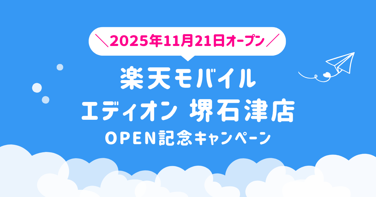 2025年11月21日(金)、大阪府堺市に新たに「楽天モバイル エディオン 堺石津店」がオープン。楽天モバイルの新規店舗では開店から60日間限定のOPEN記念キャンペーンを実施しています。