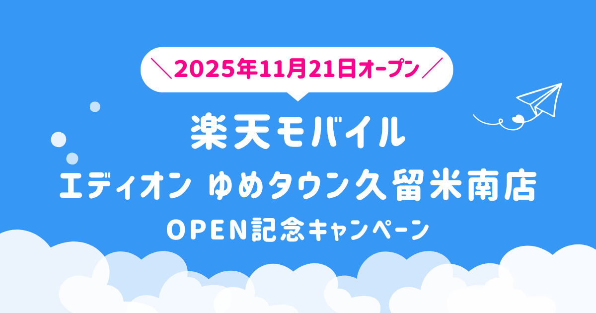 2025年11月21日(金)、福岡県久留米市に新たに「楽天モバイル エディオン ゆめタウン久留米南店」がオープン。楽天モバイルの新規店舗では開店から60日間限定のOPEN記念キャンペーンを実施しています。