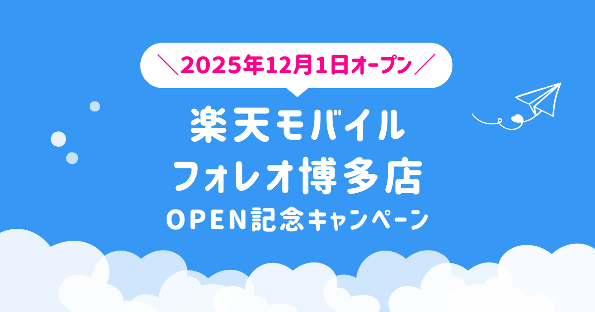 2025年12月1日(月)、福岡県福岡市博多区に新たに「楽天モバイル フォレオ博多店」がオープン。楽天モバイルの新規店舗では、開店から60日間限定のOPEN記念キャンペーンを実施しています。