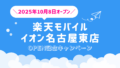 2025年10月8日(水)、愛媛県松山市に新たに「楽天モバイル 銀天街店」がオープンします。これを記念して、開店から30日間限定の特別キャンペーンが実施されます。