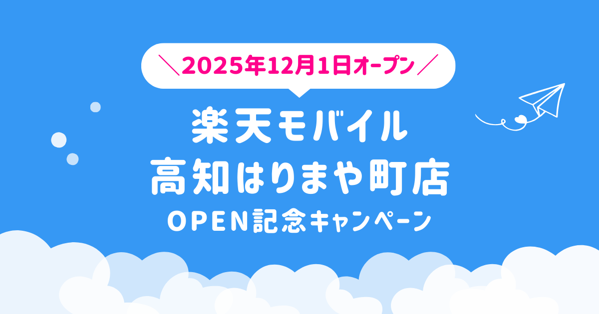 2025年12月1日(月)、高知県高知市に新たに「楽天モバイル 高知はりまや町店」がオープン。楽天モバイルの新規店舗では、開店から60日間限定のOPEN記念キャンペーンを実施しています。
