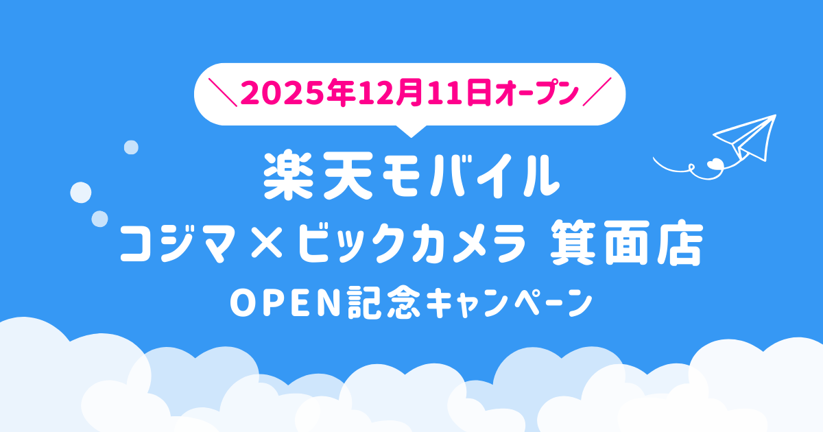 2025年12月11日(木)、大阪府箕面市瀬川に新たに「楽天モバイル コジマ×ビックカメラ 箕面店」がオープン。楽天モバイルの新規店舗では開店から60日間限定のOPEN記念キャンペーンを実施しています。