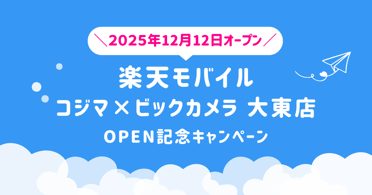 2025年12月12日(金)、大阪府大東市諸福に新たに「楽天モバイル コジマ×ビックカメラ 大東店」がオープン。楽天モバイルの新規店舗では、開店から60日間限定のOPEN記念キャンペーンを実施しています。
