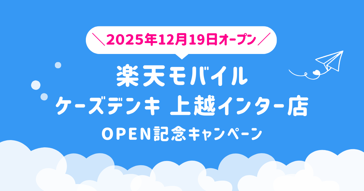 2025年12月19日(金)、新潟県上越市富岡に新たに「楽天モバイル ケーズデンキ 上越インター店」がオープン。楽天モバイルの新規店舗では、開店から60日間限定のOPEN記念キャンペーンを実施しています。