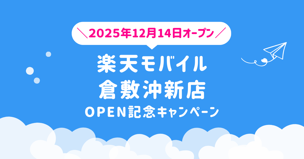 2025年12月14日(日)、岡山県倉敷市沖新町に新たに「楽天モバイル 倉敷沖新店」がオープン。楽天モバイルの新規店舗では、開店から60日間限定のOPEN記念キャンペーンを実施しています。