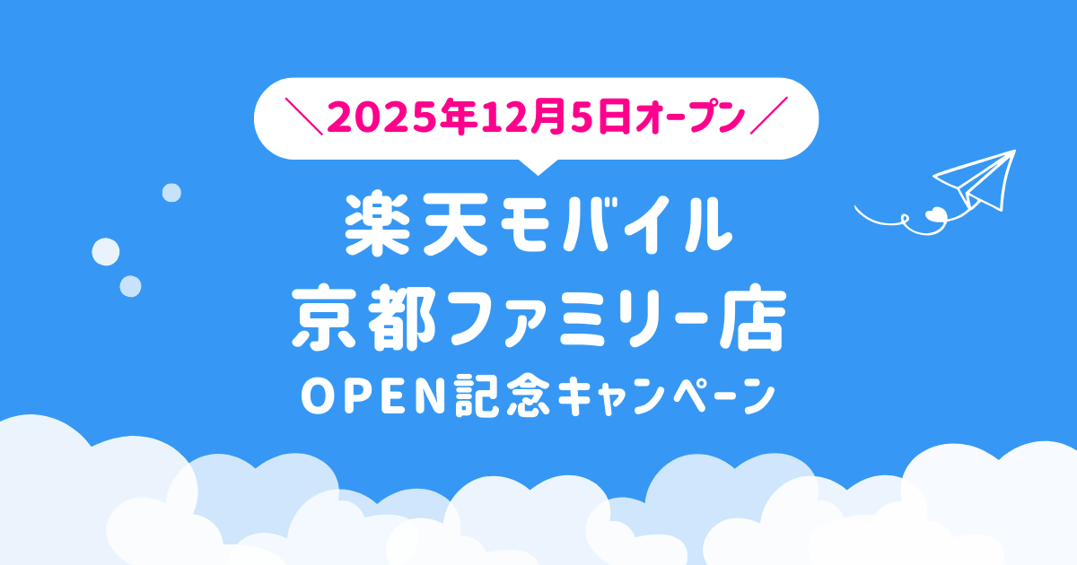 楽天モバイル 京都ファミリー店OPEN記念。最大27,000円相当ゲットのチャンス!<12月5日(金)オープン>