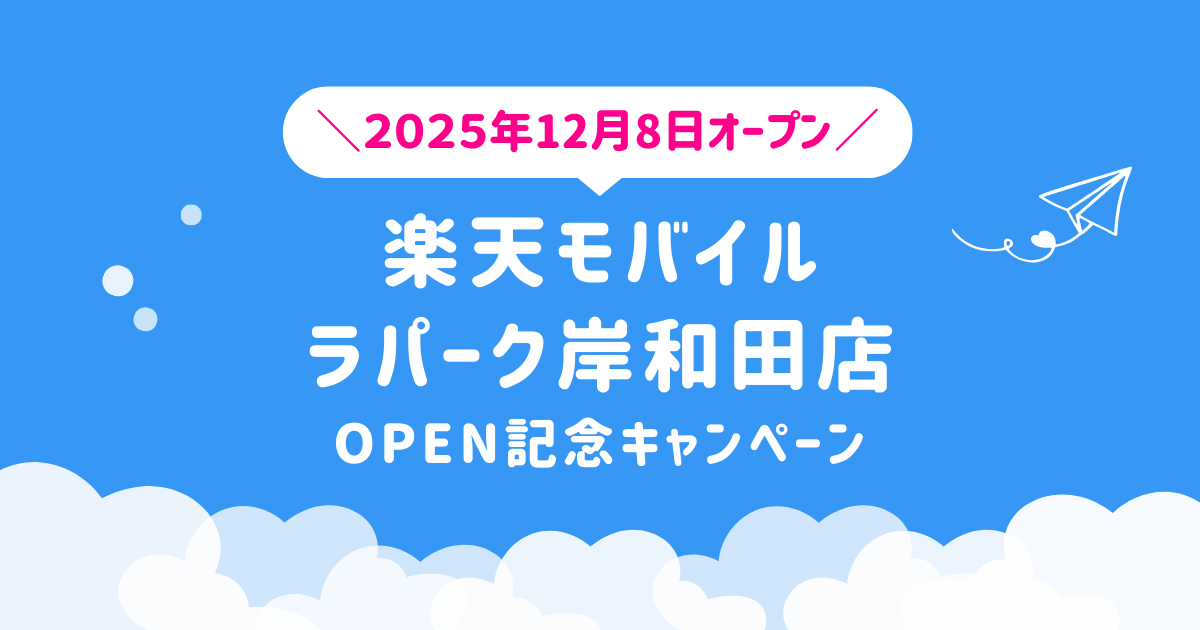 2025年12月8日(月)、大阪府岸和田市に新たに「楽天モバイル ラパーク岸和田店」がオープン。楽天モバイルの新規店舗では、開店から60日間限定のOPEN記念キャンペーンを実施しています。