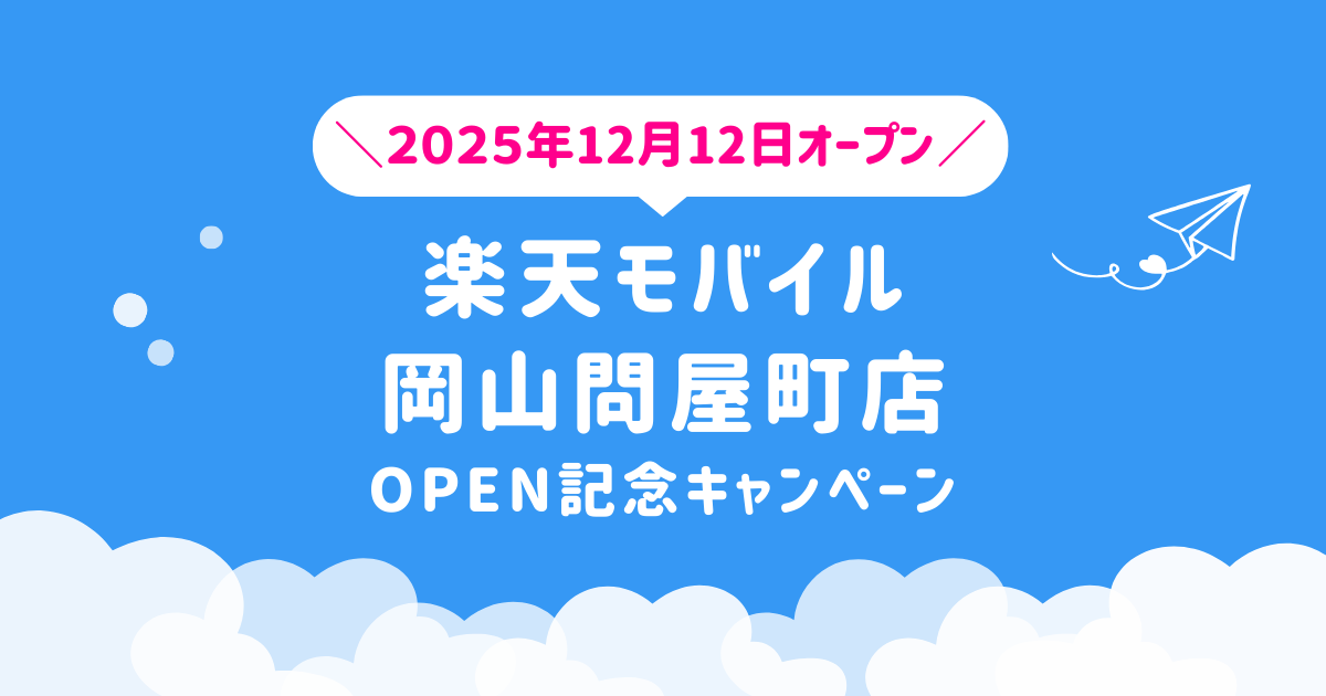 2025年12月12日(金)、岡山県岡山市北区に新たに「楽天モバイル 岡山問屋町店」がオープン。楽天モバイルの新規店舗では開店から60日間限定のOPEN記念キャンペーンを実施しています。