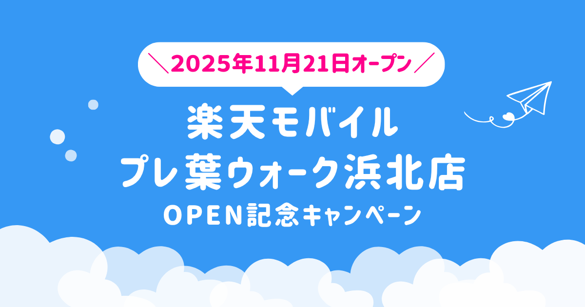2025年11月21日(金)、静岡県浜松市に新たに「楽天モバイル プレ葉ウォーク浜北店」がオープン。楽天モバイルの新規店舗では、開店から60日間限定のOPEN記念キャンペーンを実施しています。