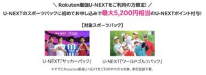 対象のスポーツパックに初めてお申し込みの方は最大5,200円相当のU-NEXTポイント還元もあり、かなりお得なプランとなっております。