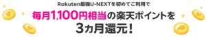 キャンペーンにエントリーさらに、Rakuten最強U-NEXTに初めてお申し込みor初めてプラン変更の方は3カ月間毎月1,100ポイントが還元されます。