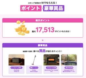 各ステージ参加でスタンプを集め、スタンプ数に応じて最大17,513ポイント+豪華賞品が当たる企画も実施中です。