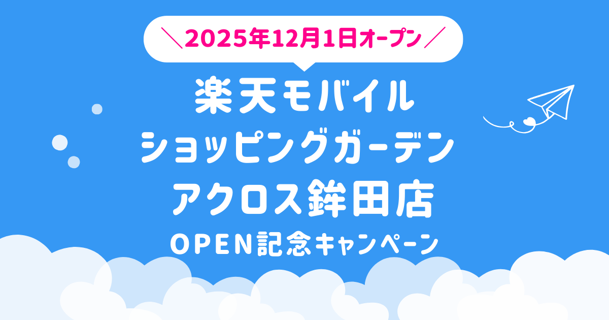 楽天モバイル ショッピングガーデン アクロス鉾田店OPEN記念。最大27,000円相当ゲットのチャンス!<12月1日(月)オープン>
