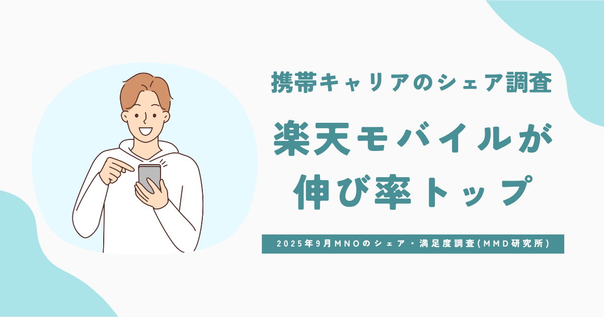 楽天モバイルが携帯キャリアのシェア調査で伸び率トップを記録しました。2025年9月に実施されたMMD研究所の「MNOのシェア・満足度調査」によると、楽天モバイルのメイン回線利用率は前回比で0.6ポイント増加し、主要キャリアの中で最も高い伸びを示しました。次いでdocomoが0.3ポイント、ahamo、LINEMO、UQ mobileが0.1ポイント増加しました。