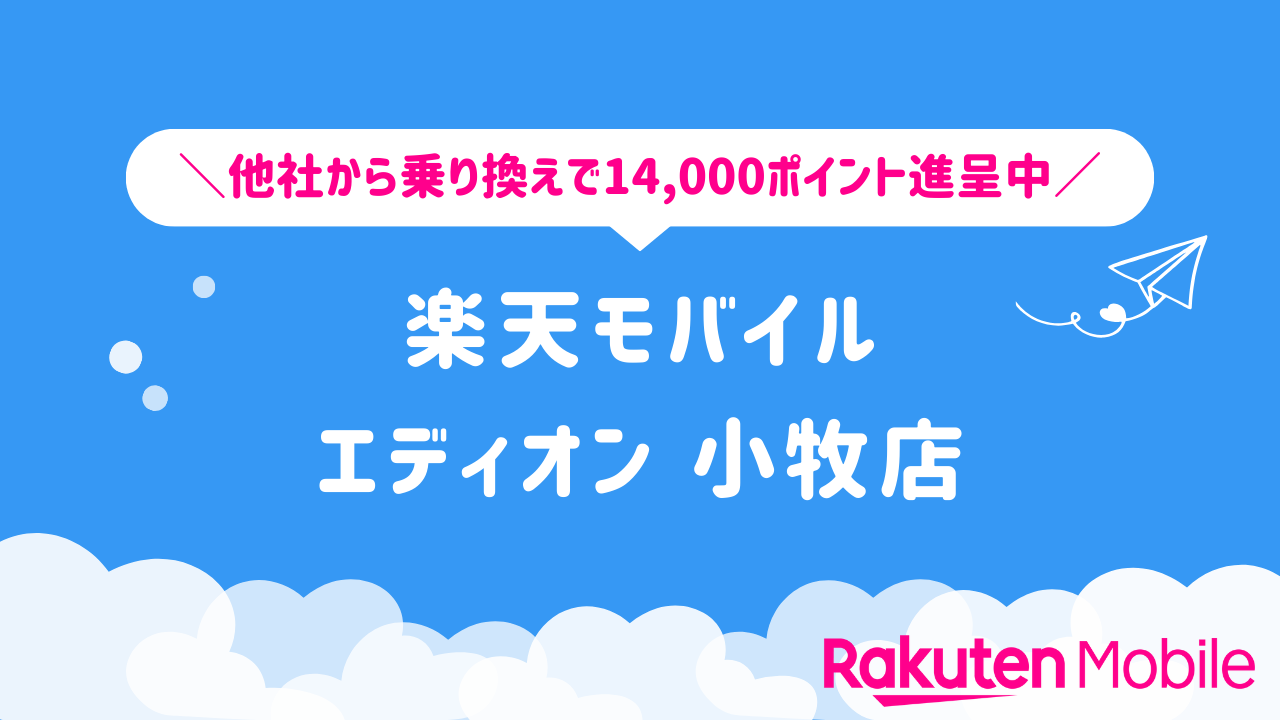 楽天モバイル エディオン 小牧店の店舗情報をわかりやすく整理しています。他社から乗り換えで14,000ポイントをゲットできるキャンペーンや、店舗限定で利用できる特典などの情報も合わせてご紹介いたします。