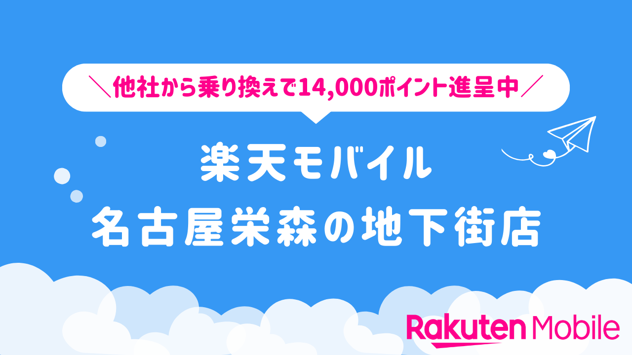 楽天モバイル 名古屋栄森の地下街店の店舗情報をわかりやすく整理しています。他社から乗り換えで14,000ポイントをゲットできるキャンペーンや、店舗限定で利用できる特典などの情報も合わせてご紹介いたします。