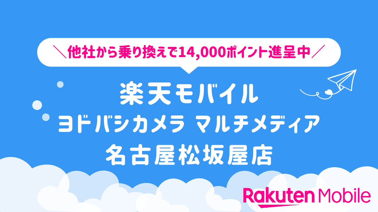 楽天モバイル ヨドバシカメラ マルチメディア名古屋松坂屋店の店舗情報をわかりやすく整理しています。他社から乗り換えで14,000ポイントをゲットできるキャンペーンや、店舗限定で利用できる特典などの情報も合わせてご紹介いたします。