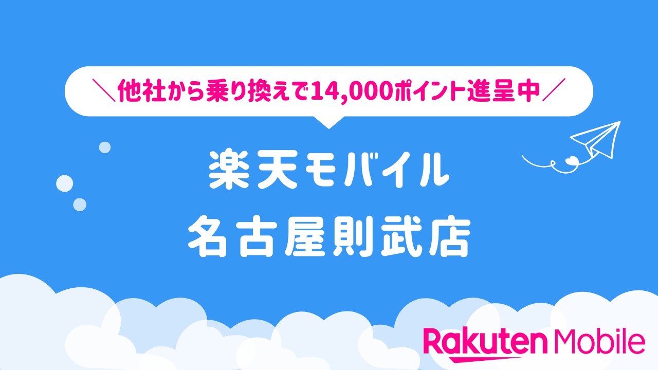 楽天モバイル 名古屋則武店の店舗情報をわかりやすく整理しています。他社から乗り換えで14,000ポイントをゲットできるキャンペーンや、店舗限定で利用できる特典などの情報も合わせてご紹介いたします。