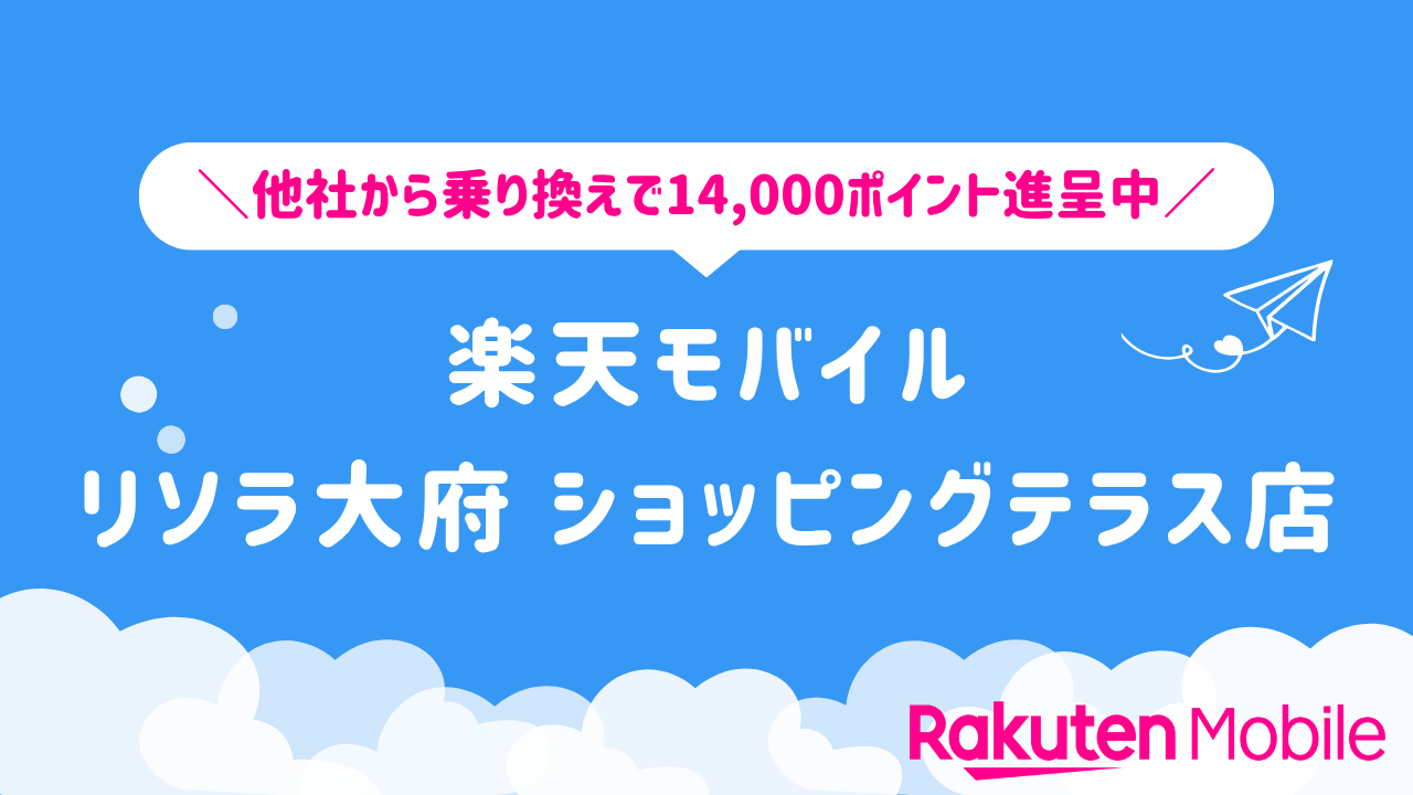 楽天モバイル リソラ大府 ショッピングテラス店 – 他社から乗り換えで14,000ポイント進呈中!