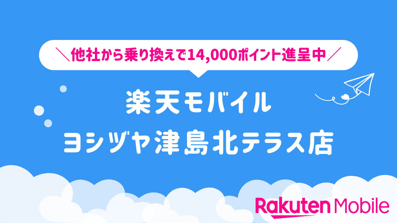 楽天モバイル ヨシヅヤ津島北テラス店の店舗情報をわかりやすく整理しています。他社から乗り換えで14,000ポイントをゲットできるキャンペーンや、店舗限定で利用できる特典などの情報も合わせてご紹介いたします。