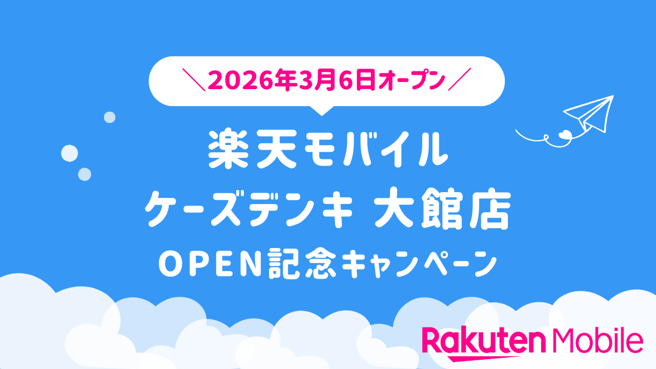 2026年3月6日(金)、秋田県大館市に新たに「楽天モバイル ケーズデンキ 大館店」がオープン。今なら従業員紹介キャンペーンを利用すれば他社から乗り換えで14,000ポイントも獲得できます。また、楽天モバイルの新規店舗では開店から60日間限定のOPEN記念キャンペーンを実施しています。ショップ来訪前に要チェックです。(※従業員紹介キャンペーンは開店から60日以降もご利用できます。)