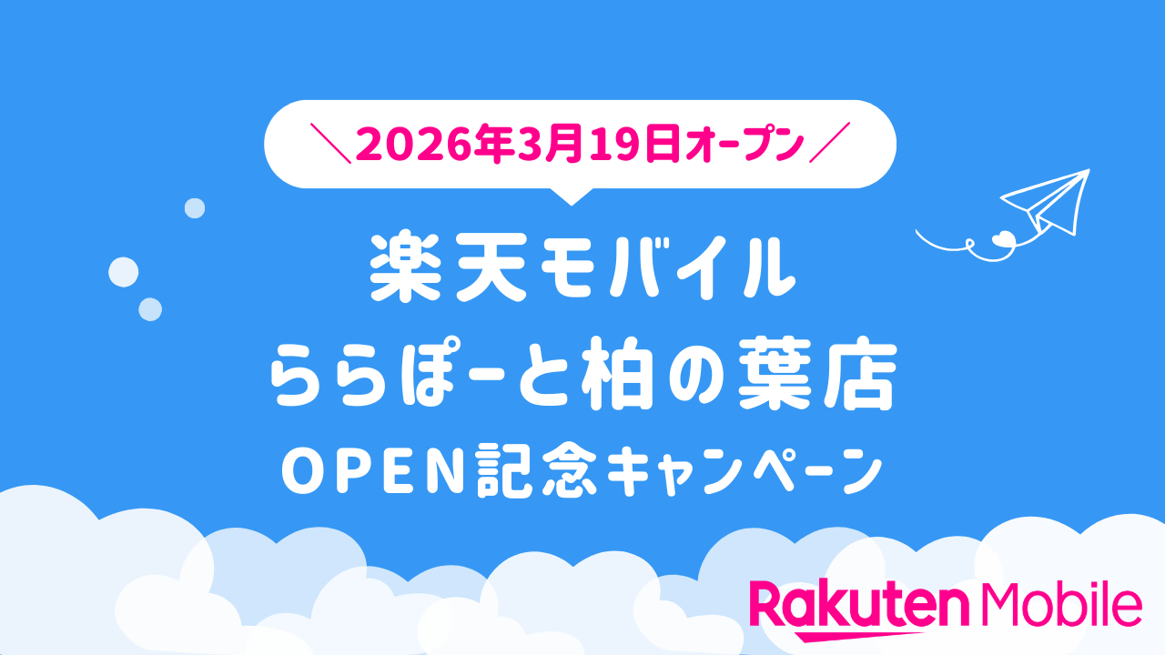 2026年3月19日(木)、千葉県柏市に新たに「楽天モバイル ららぽーと柏の葉店」がオープン。今なら従業員紹介キャンペーンを利用すれば他社から乗り換えで14,000ポイントも獲得できます。また、楽天モバイルの新規店舗では開店から60日間限定のOPEN記念キャンペーンを実施しています。ショップ来訪前に要チェックです。(※従業員紹介キャンペーンは開店から60日以降もご利用できます。