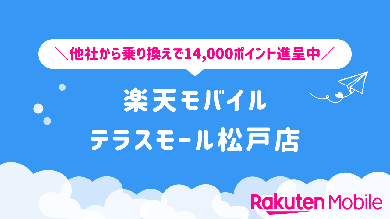 楽天モバイル テラスモール松戸店 – 他社から乗り換えで14,000ポイント進呈中!