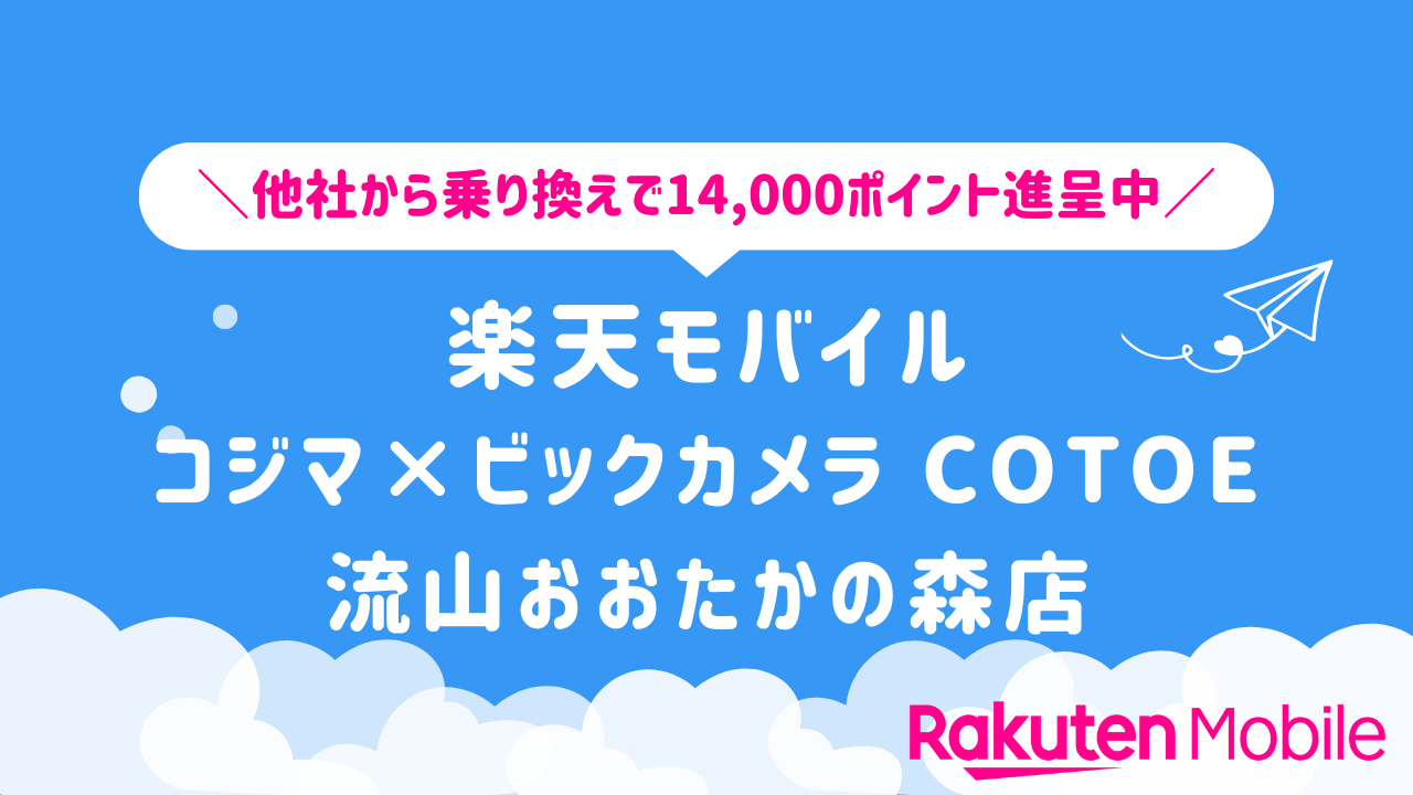 楽天モバイル コジマ×ビックカメラ COTOE流山おおたかの森店で実施中のお得なキャンペーン