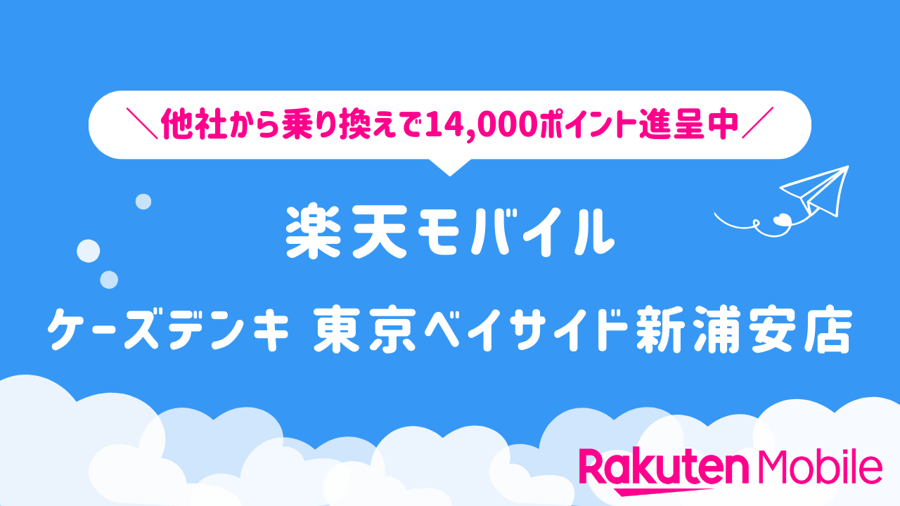 楽天モバイル ケーズデンキ 東京ベイサイド新浦安店の店舗情報をわかりやすく整理しています。他社から乗り換えで14,000ポイントをゲットできるキャンペーンや、店舗限定で利用できる特典などの情報も合わせてご紹介いたします。