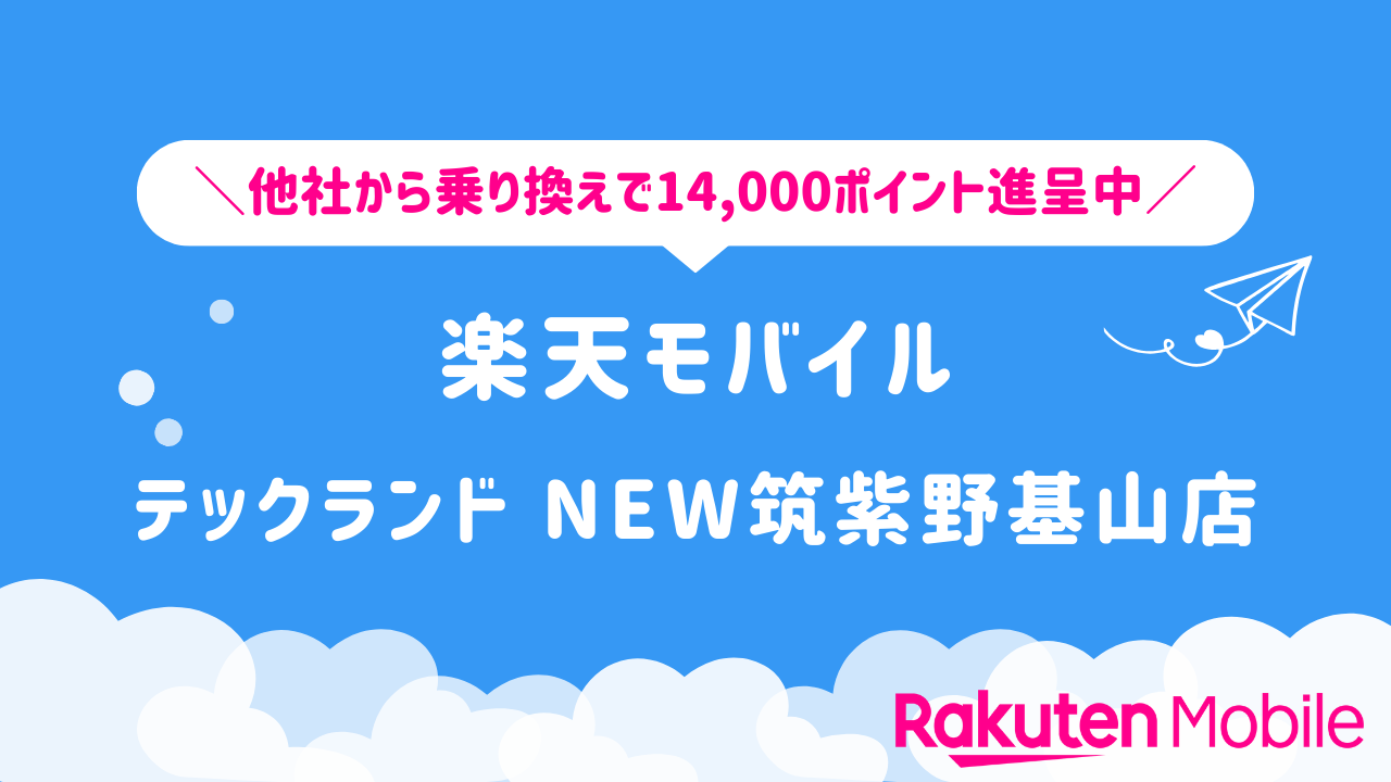 楽天モバイル テックランド New筑紫野基山店 – 他社から乗り換えで14,000ポイント進呈中!