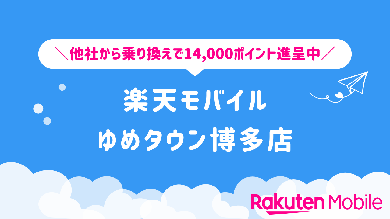 楽天モバイル ゆめタウン博多店の店舗情報をわかりやすく整理しています。他社から乗り換えで14,000ポイントをゲットできるキャンペーンや、店舗限定で利用できる特典などの情報も合わせてご紹介いたします。