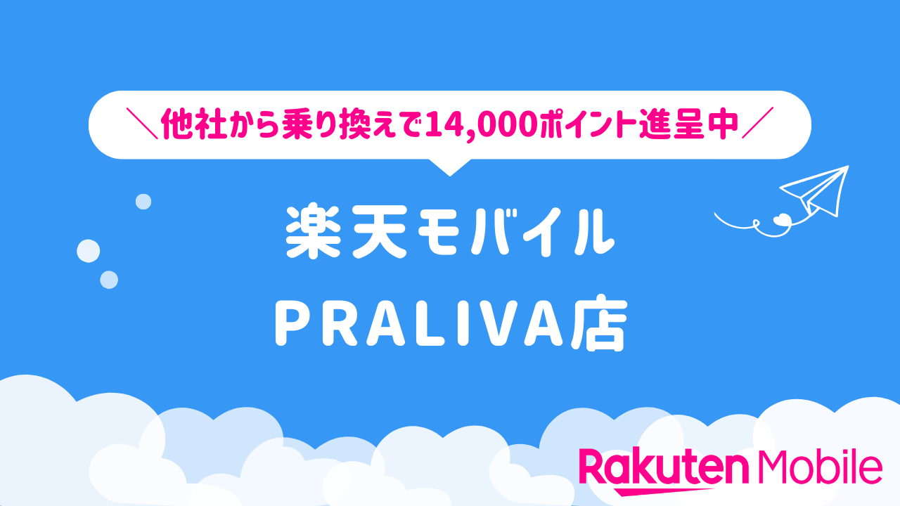 楽天モバイル PRALIVA店 – 他社から乗り換えで14,000ポイント進呈中!