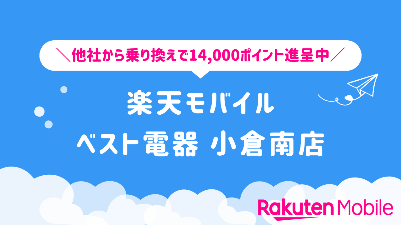 楽天モバイル ベスト電器 小倉南店の店舗情報をわかりやすく整理しています。他社から乗り換えで14,000ポイントをゲットできるキャンペーンや、店舗限定で利用できる特典などの情報も合わせてご紹介いたします。