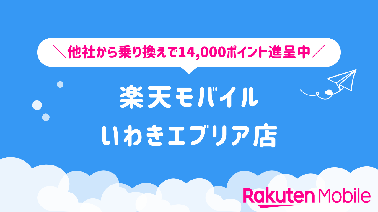 楽天モバイル いわきエブリア店の店舗情報をわかりやすく整理しています。他社から乗り換えで14,000ポイントをゲットできるキャンペーンや、店舗限定で利用できる特典などの情報も合わせてご紹介いたします。