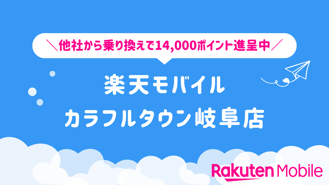 楽天モバイル カラフルタウン岐阜店の店舗情報をわかりやすく整理しています。他社から乗り換えで14,000ポイントをゲットできるキャンペーンや、店舗限定で利用できる特典などの情報も合わせてご紹介いたします。