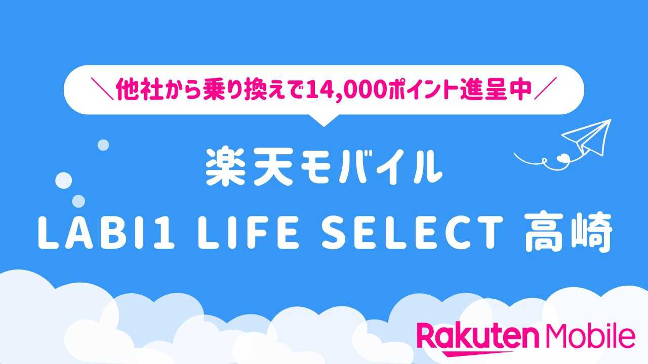 楽天モバイル LABI1 LIFE SELECT 高崎の店舗情報をわかりやすく整理しています。他社から乗り換えで14,000ポイントをゲットできるキャンペーンや、店舗限定で利用できる特典などの情報も合わせてご紹介いたします。