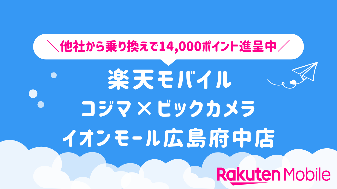 楽天モバイル コジマ×ビックカメラ イオンモール広島府中店 – 他社から乗り換えで14,000ポイント進呈中!