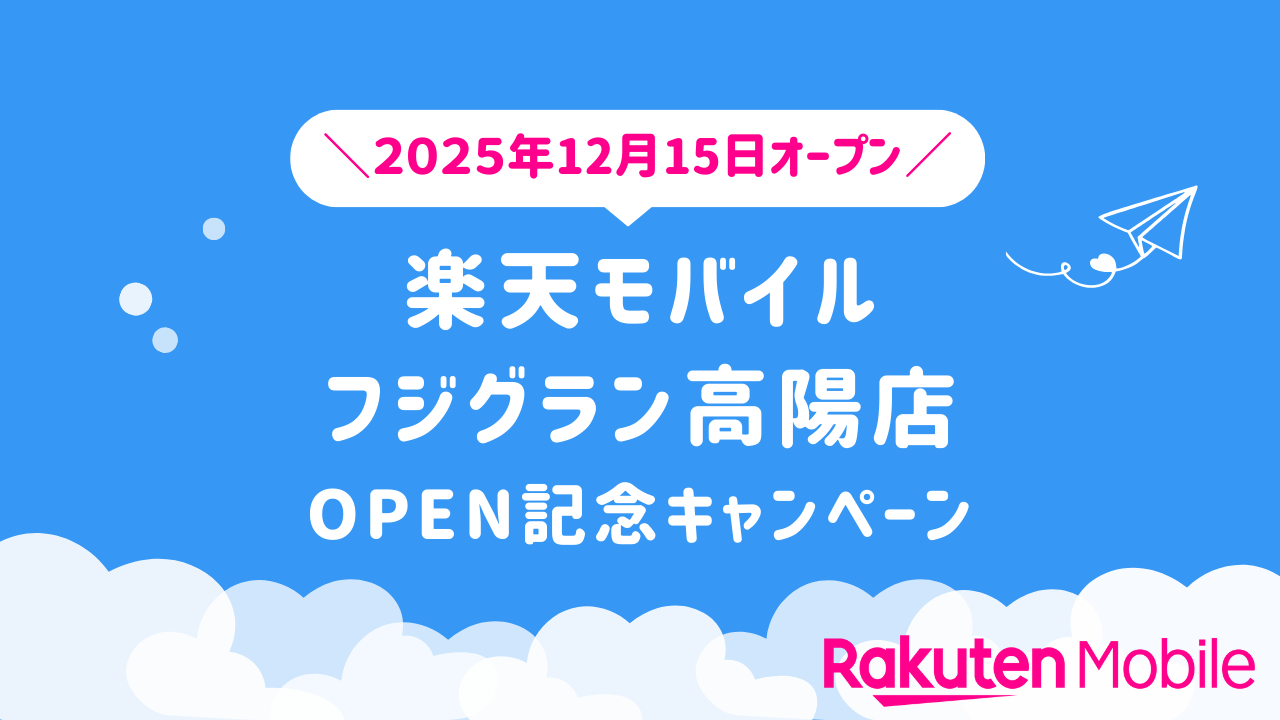 2025年12月15日(月)、広島県広島市安佐北区に新たに「楽天モバイル フジグラン高陽店」がオープン。今なら従業員紹介キャンペーンを利用すれば他社から乗り換えで14,000ポイントも獲得できます。また、楽天モバイルの新規店舗では開店から60日間限定のOPEN記念キャンペーンを実施しています。ショップ来訪前に要チェックです。(※従業員紹介キャンペーンは開店から60日以降もご利用できます。)