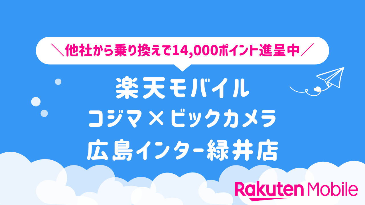 楽天モバイル コジマ×ビックカメラ 広島インター緑井店 – 他社から乗り換えで14,000ポイント進呈中!